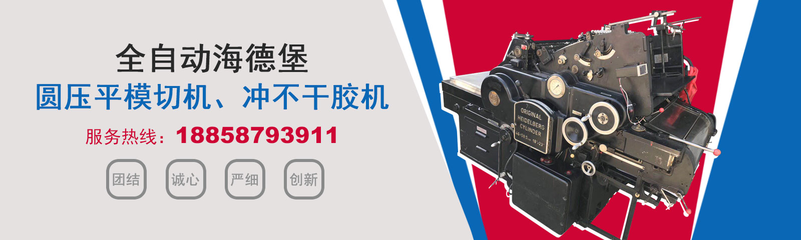瑞安市恒柯機械廠(www.wzhkjx_com.721du.com)是國內專業制造銷售全自動模切機,全自動燙金機,圓壓平模切機,圓壓平燙金機,滾筒燙金機,沖不干膠機,海德堡凸印機.銷售的產品系列規格齊全,產品具有速度快,壓力均勻,套印準確等特點。
